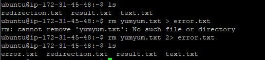 # rm yumyum.txt > result.txt 2> error.log와 같은 명령어입니다. 굳이 1 안해도 됩니다.