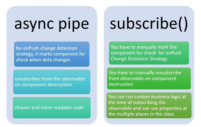 Async Pipe는 해당 로직을 이미 Angular에서 제공을 해줘, subscribe() 메소드를 사용하는 것보다, 위의 그림처럼 3가지의 이점을 가질 수 있습니다.